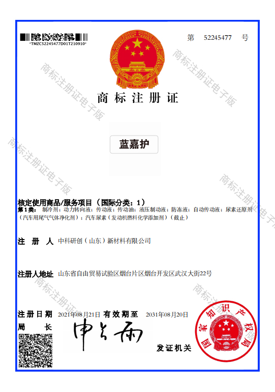 中科-蓝嘉护商标注册证