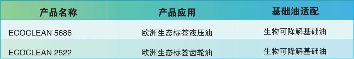 ECOCLEAN绿色润滑添加剂-用于生产满足ECOLABEL欧洲生态标签的润滑油绿色润滑剂又称环境友好润滑剂,不仅要具有传统矿物润滑剂的使用性能,在使用效能上达到特定润滑剂产品的规格指标,满足使用对象的润滑要求:又能在较短时间内被活性生物(细菌 )分解为 CO2和H2O,润滑剂及其损耗产物对生态环境不产生危害,无生物毒性或对环境毒性要小。